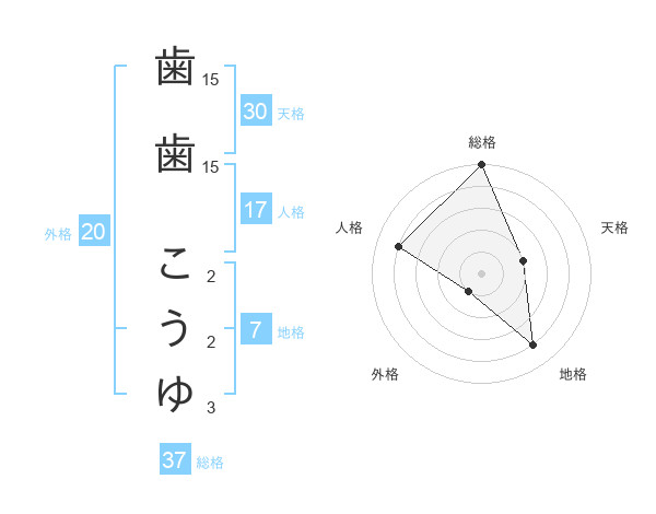 歯歯 こうゆさんを姓名の画数から五運を鑑定
