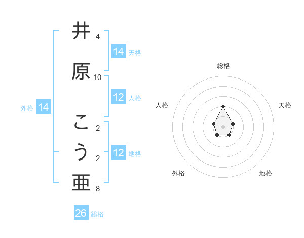 井原 こう亜さんの天格は14画の1点!