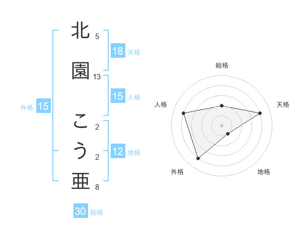 北園 こう亜さんを姓名の画数から五運を鑑定
