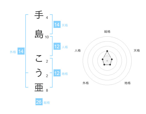 手島 こう亜さんの外格は14画の1点!