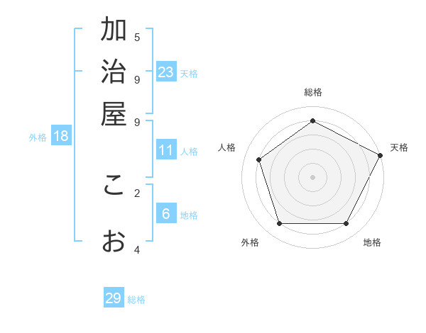 加治屋 こおさんの天格は23画の5点!