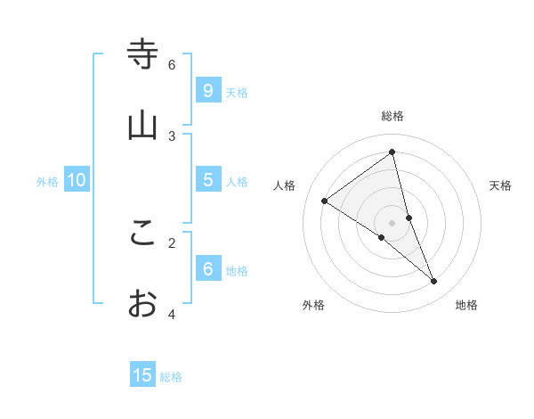 寺山 こおさんの総格は15画の4点!