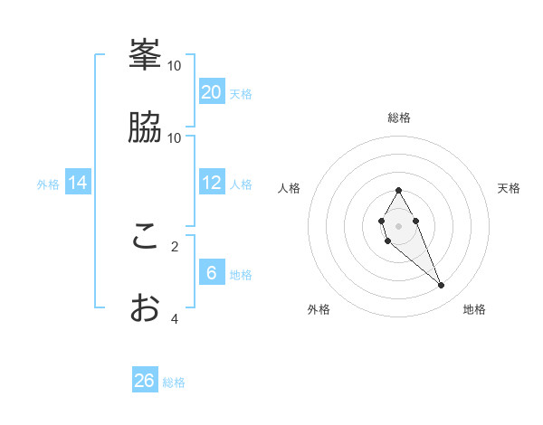 峯脇 こおさんを姓名の画数から五運を鑑定
