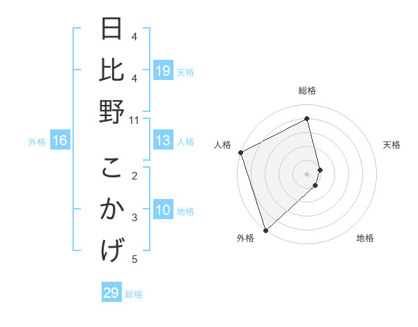日比野 こかげさんの総格は29画の4点!