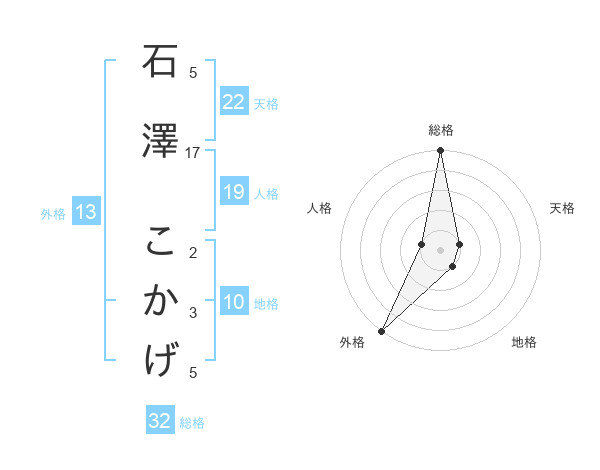 石澤 こかげさんの外格は13画の5点!