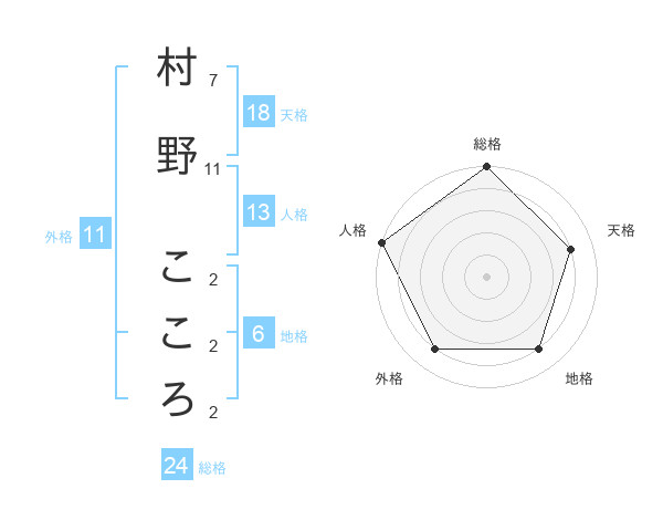 村野 こころさんの天格は18画の4点!