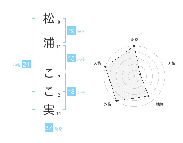 松浦 ここ実さんを姓名の画数から五運を鑑定