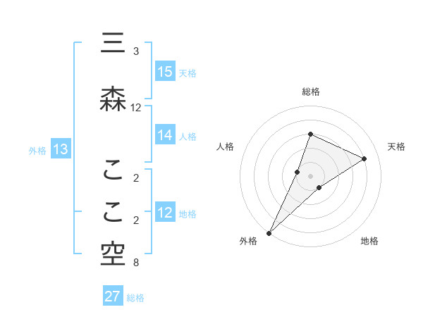 三森 ここ空さんの天格は15画の4点!