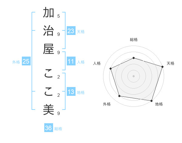 加治屋 ここ美さんを姓名の画数から五運を鑑定