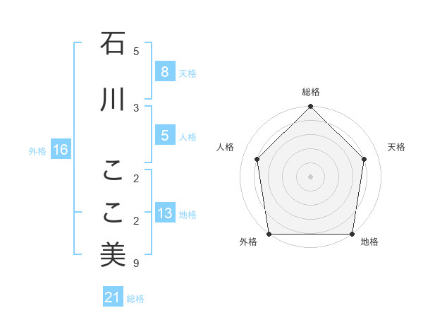 石川 ここ美さんを姓名の画数から五運を鑑定