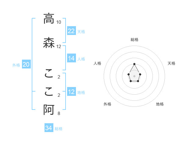 高森 ここ阿さんを姓名の画数から五運を鑑定