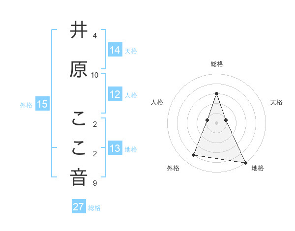 井原 ここ音さんを姓名の画数から五運を鑑定
