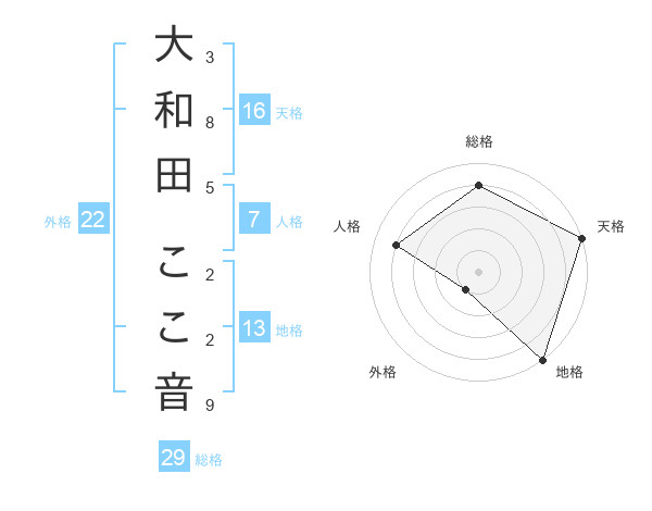 大和田 ここ音さんを姓名の画数から五運を鑑定