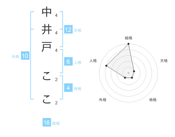 中井戸 ここさんを姓名の画数から五運を鑑定
