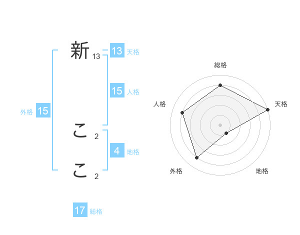 新 ここさんの総格は17画の4点!