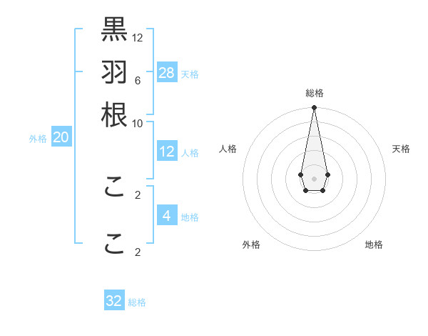 黒羽根 ここさんを姓名の画数から五運を鑑定
