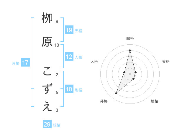 栁原 こずえさんを姓名の画数から五運を鑑定
