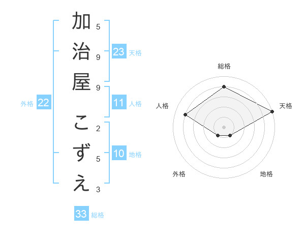 加治屋 こずえさんを姓名の画数から五運を鑑定