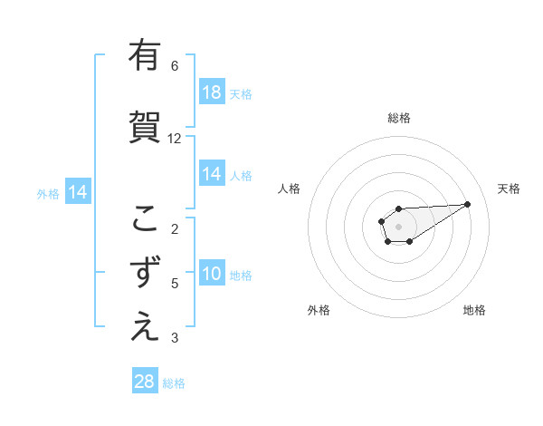 有賀 こずえさんの天格は18画の4点!