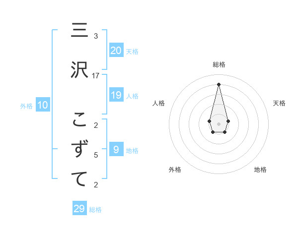 三沢 こずてさんを姓名の画数から五運を鑑定