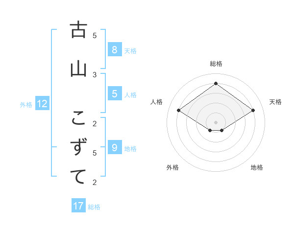古山 こずてさんの総格は17画の4点!