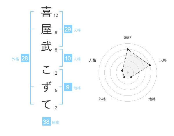 喜屋武 こずてさんの総格は38画の4点!