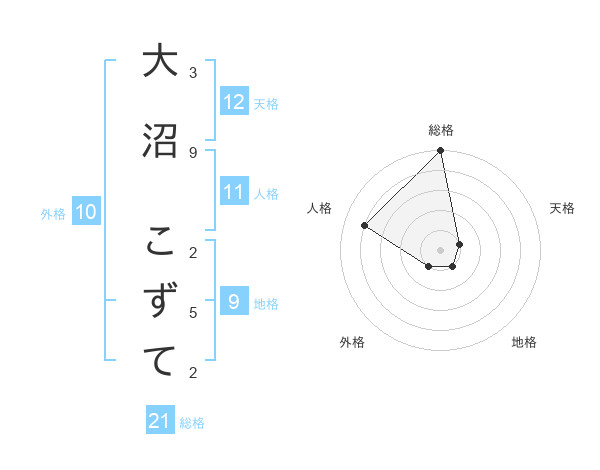 大沼 こずてさんを姓名の画数から五運を鑑定