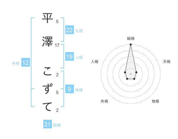 平澤 こずてさんの総格は31画の5点!