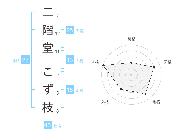 二階堂 こず枝さんを姓名の画数から五運を鑑定