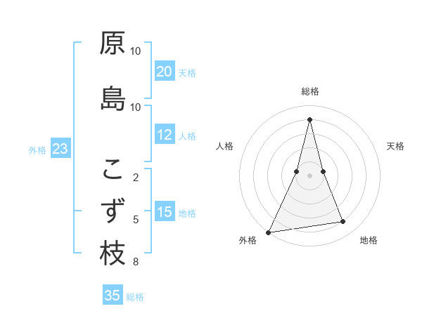 原島 こず枝さんを姓名の画数から五運を鑑定