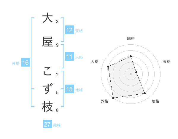 大屋 こず枝さんを姓名の画数から五運を鑑定
