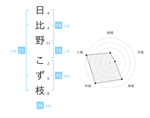 日比野 こず枝さんを姓名の画数から五運を鑑定