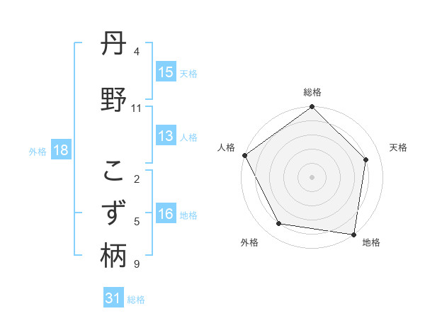 丹野 こず柄さんを姓名の画数から五運を鑑定