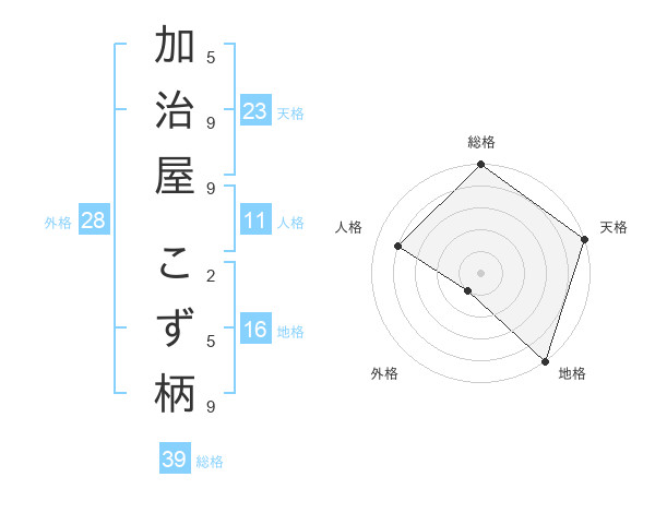 加治屋 こず柄さんを姓名の画数から五運を鑑定