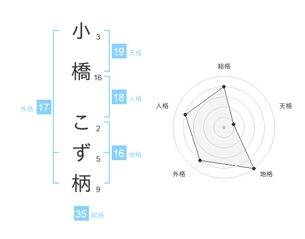 小橋 こず柄さんを姓名の画数から五運を鑑定