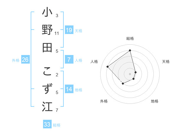 小野田 こず江さんの総格は33画の4点!