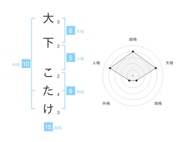 大下 こたけさんの総格は15画の4点!