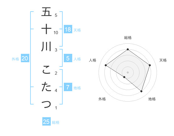五十川 こたつさんの総格は25画の4点!