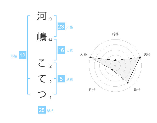 河嶋 こてつさんを姓名の画数から五運を鑑定