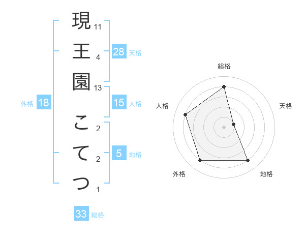 現王園 こてつさんを姓名の画数から五運を鑑定