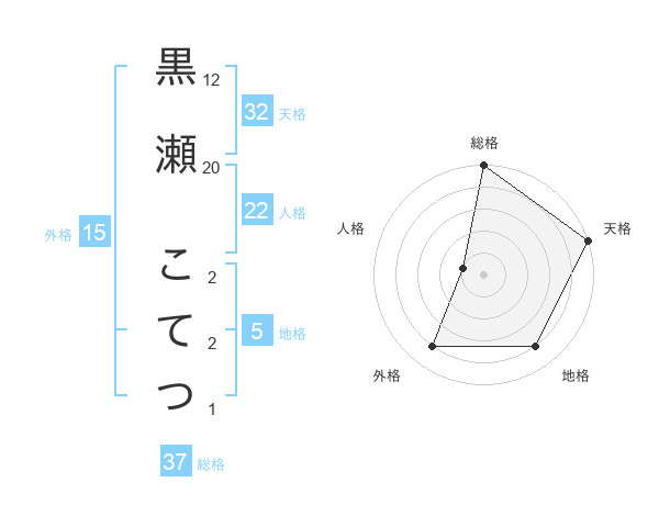 黒瀬 こてつさんを姓名の画数から五運を鑑定