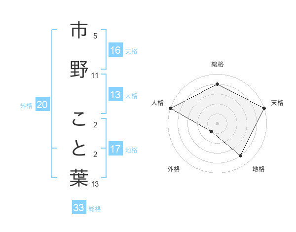 市野 こと葉さんを姓名の画数から五運を鑑定