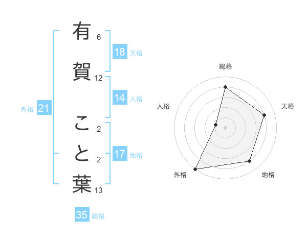 有賀 こと葉さんを姓名の画数から五運を鑑定