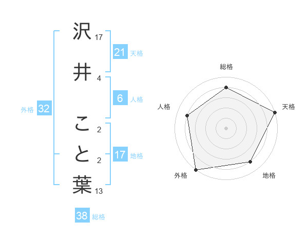 沢井 こと葉さんを姓名の画数から五運を鑑定