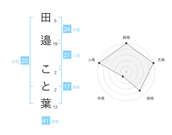 田邉 こと葉さんを姓名の画数から五運を鑑定