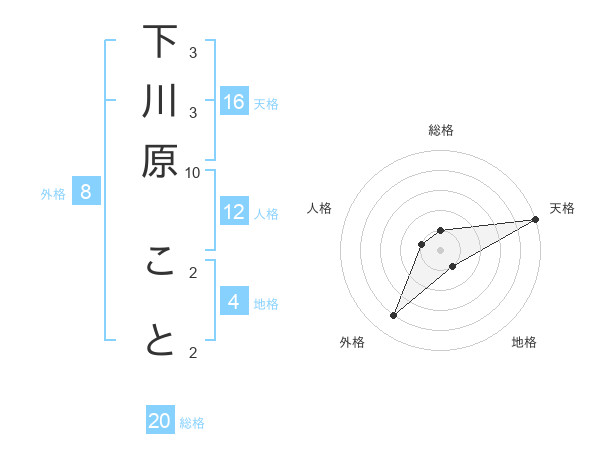 下川原 ことさんの総格は20画の1点!