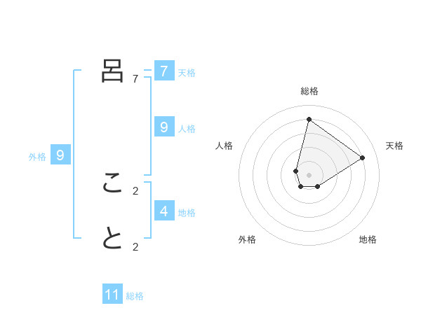 呂 ことさんの総格は11画の4点!