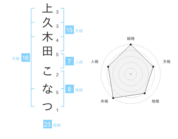 上久木田 こなつさんを姓名の画数から五運を鑑定