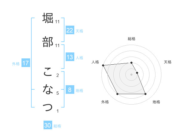 堀部 こなつさんを姓名の画数から五運を鑑定