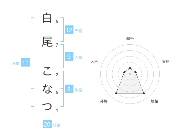白尾 こなつさんの総格は20画の1点!